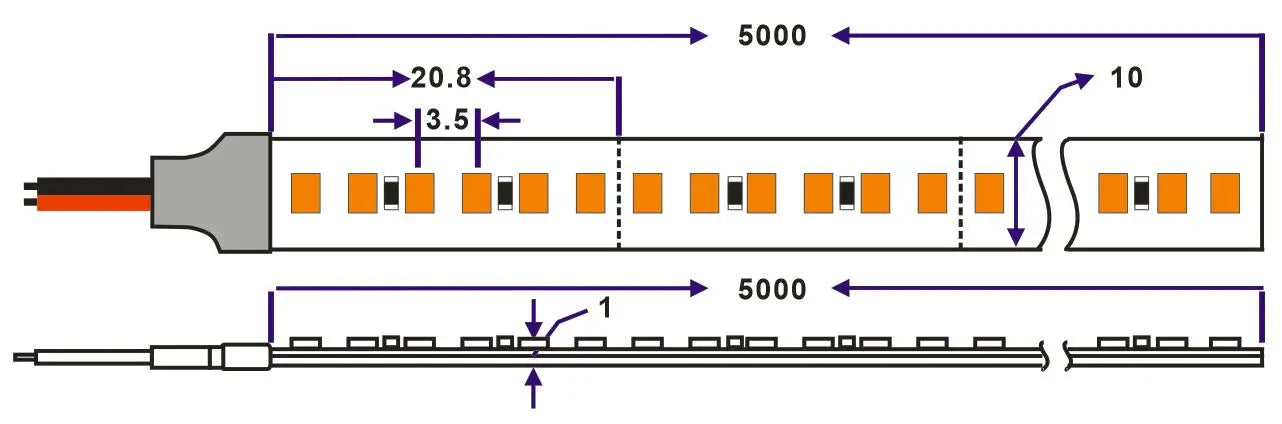 Cutting: 12V3 leds cutting, 24V6 leds cutting. 12V  120 leds is about 2.5cm, 240 leds is about 1.25cm;24V 60 leds is about 10cm, 120 leds is about 5cm, 180 leds is about 3.33cm, 240 leds is about 2.5cm, 300leds is about 2cm, 700leds is about 0.86cm