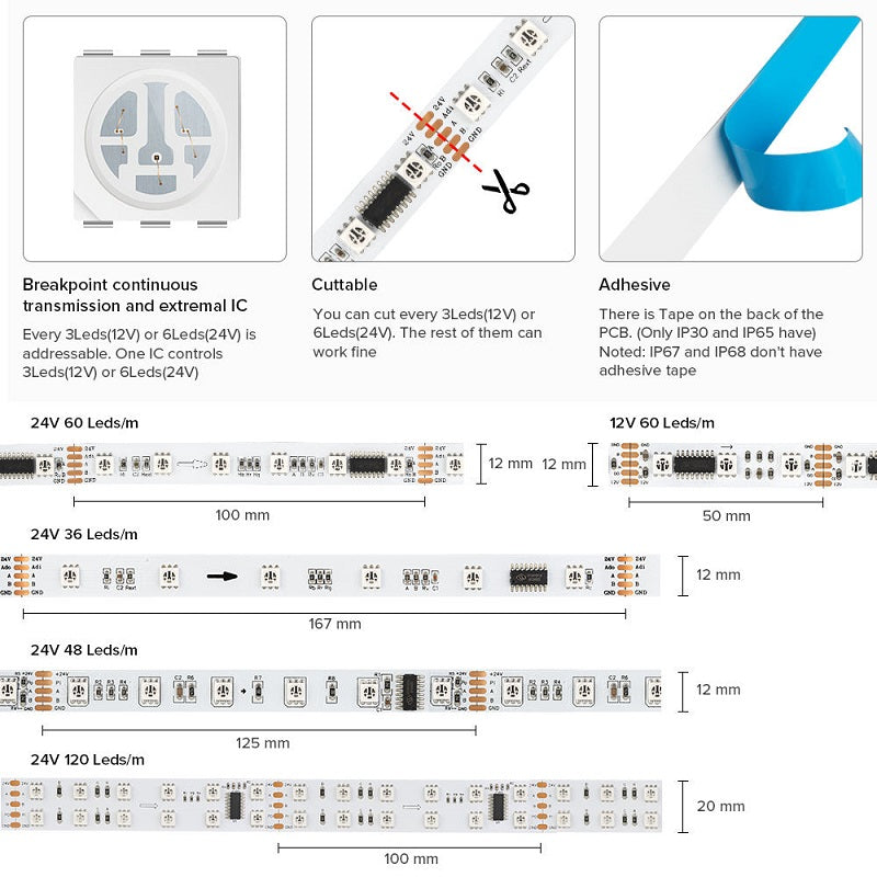 When purchasing, in addition to determining the required length, color temperature, and pixel density (number of LEDs per meter), the following points require special attention: